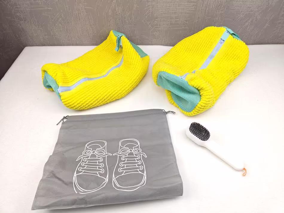 Article NEUF ➡️(pr-879) Deux Sacs à linge à fermeture éclair pour laver les chaussures à la machine à Laver, réutilisable + brosse + sac à chaussure. —————————- \
