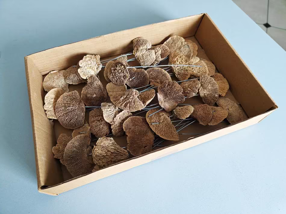 Article Neuf, ➡️(pr-51) 1 Boite de 40 champignons séché (Non comestible) monté sur tige métal pour décoration, loisirs créatif, hauteur total (champignon + tige) environ 18 cm\