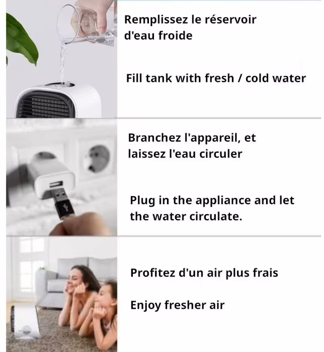 Ventilateur / Rafraichisseur (en remplissant d’eau fraiche) blanc & noir