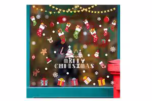 Article NEUF ➡️(pj-481) Stickers de Noël pour fenêtre, réutilisable, électrostatique, décors : pères Noël, bonhomme de neige, sapin, cadeau