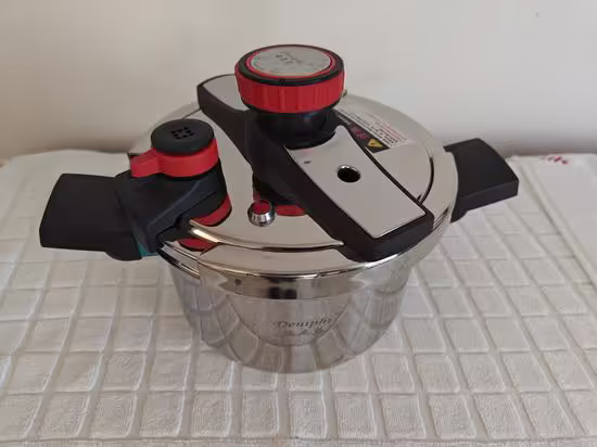 Article NEUF Jamais servi ➡️(pj-693) Autocuiseur Deniphi 4L - Diamètre intérieur 20cm - Ht 13cm - Fermeture facile (juste en tournant la poignée) - Tous feux —————————- de la table \