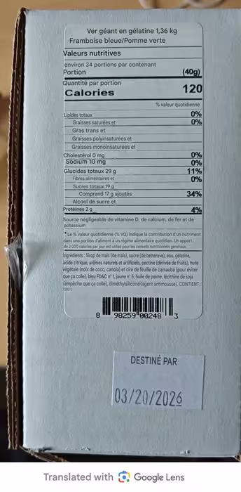 Article NEUF ➡️(pr-897) Confiserie : Bonbon gélatine en forme de ver 58 cm, emballage scellé, , poids + de 1kg, composition (voir la dernière photo), validité 20/03/2026, valeur 35€\