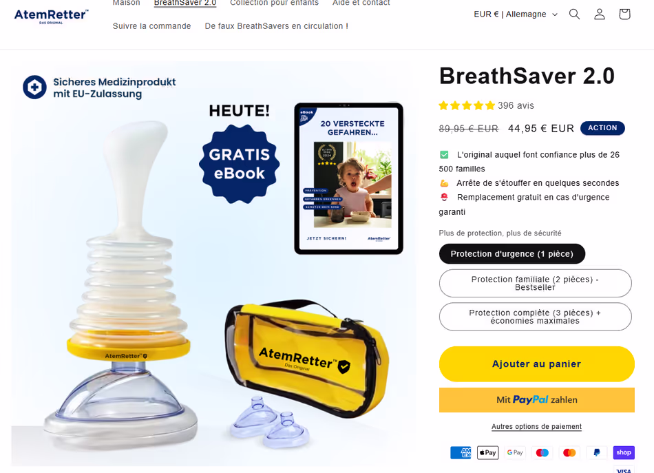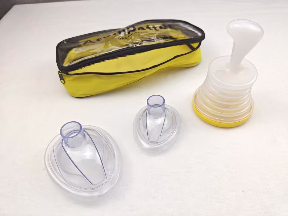 Article NEUF ➡️(pr-813) Kit anti étouffement, avec sa trousse. Modèle original, marque : AntemRetter, Dispositif d’urgence pour adultes et enfants en cas obstruction des voies respiratoires. Diamètre base du soufflet 9.7 cm, Deux tailles de masque pour enfants et adultes. Notice d’utilisation fourni - (VALEUR 45€)