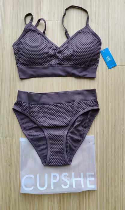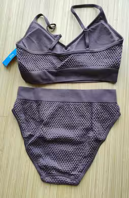 Cupshe Maillot de bain 2 pièces texturéCouleur cuir / lavandeTaille LNylon / elasthane