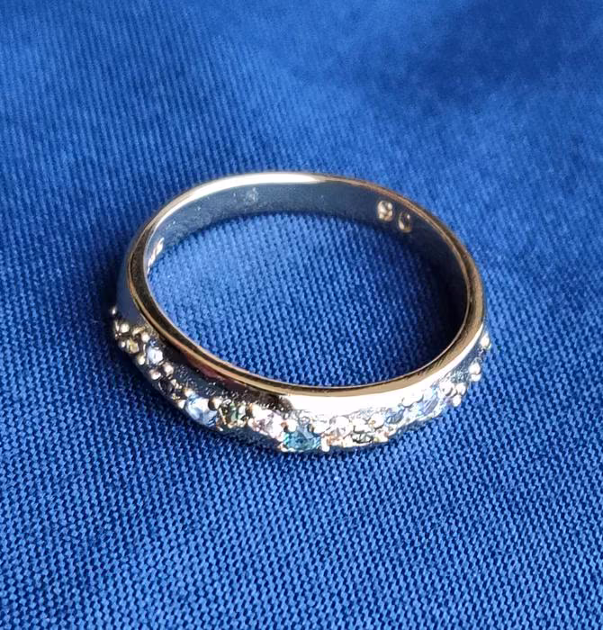 Bague fantaisie dorée incrustations blanc / bleu