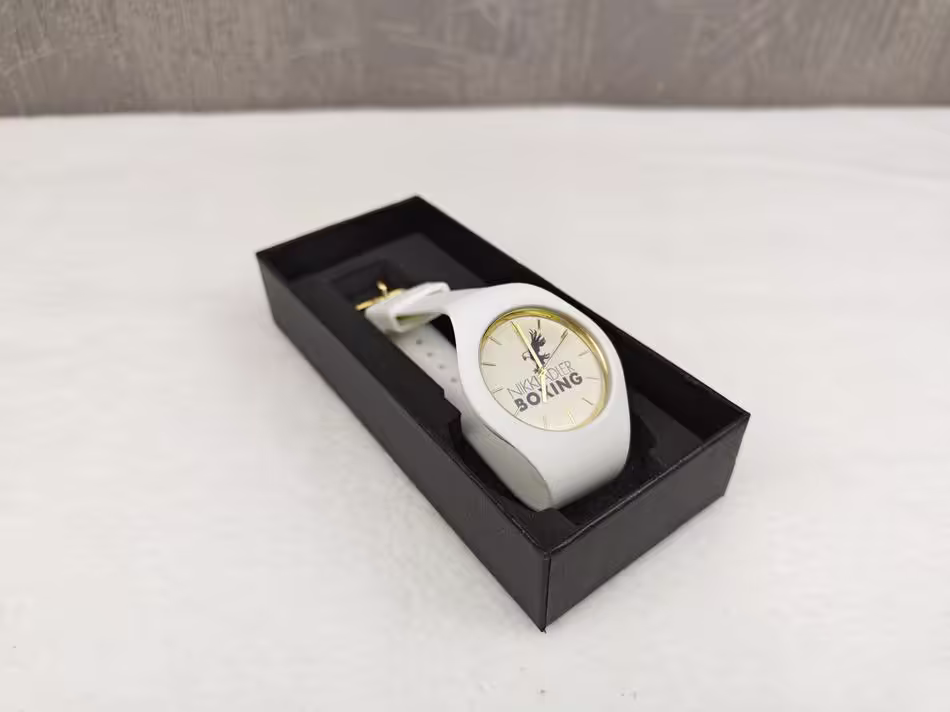 Article Neuf, ➡️ (pr-726) Montre Nikki A DLER boxing + écrin noir, réglable, Bachelet plastique souple blanc, longueur à plat 24 cm, largeur 18 mm - Valeur 99 € \