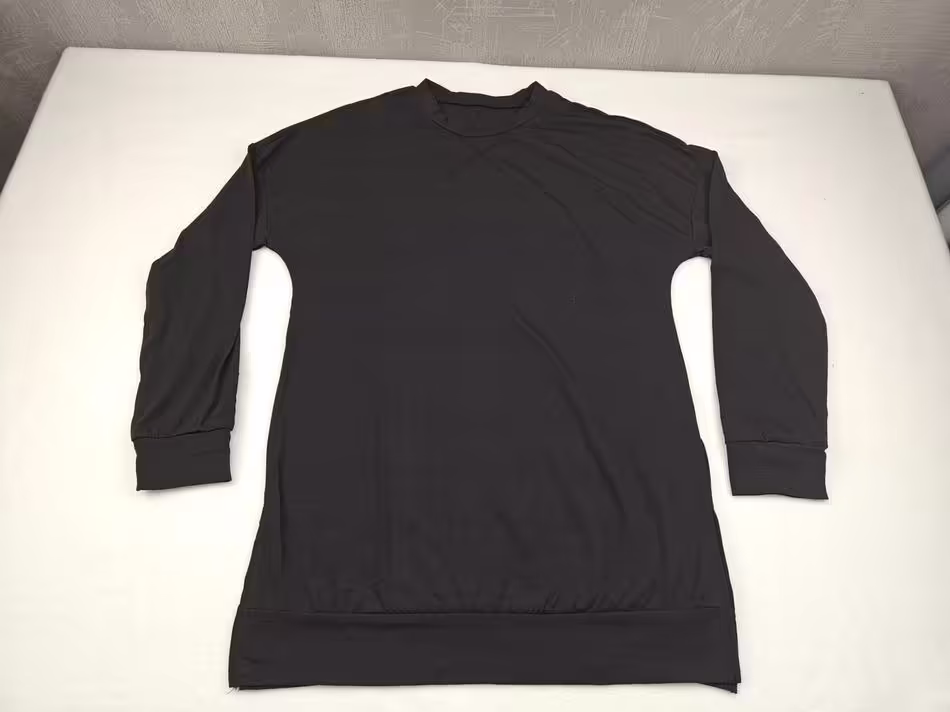 Article Neuf ➡️ (PR-738) Tee-shirts long, Noir, manches longues, col rond, fendu en bas sur les côtés, 100 % coton , taille : S, dimensions : Longueur : 75 cm, Largueur corps : 49 cm, longueur des manches 47 cm \