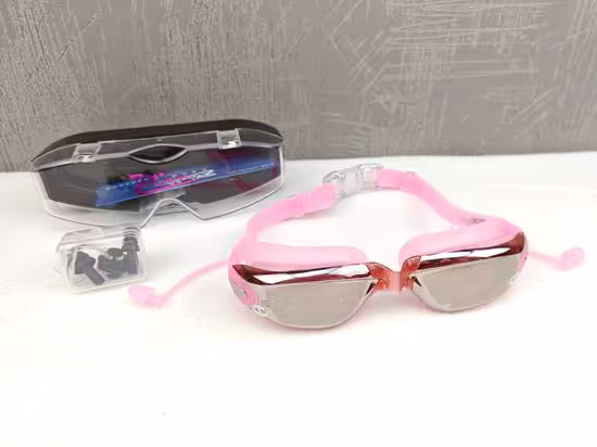 Article NEUF, film protection intact ➡️(pr-782) Lunettes de Natation+ boitier, anti-buée, protection UV, anti-Fuite, sangle réglable et Bouchons d’oreille intégré + une boite de bouchon