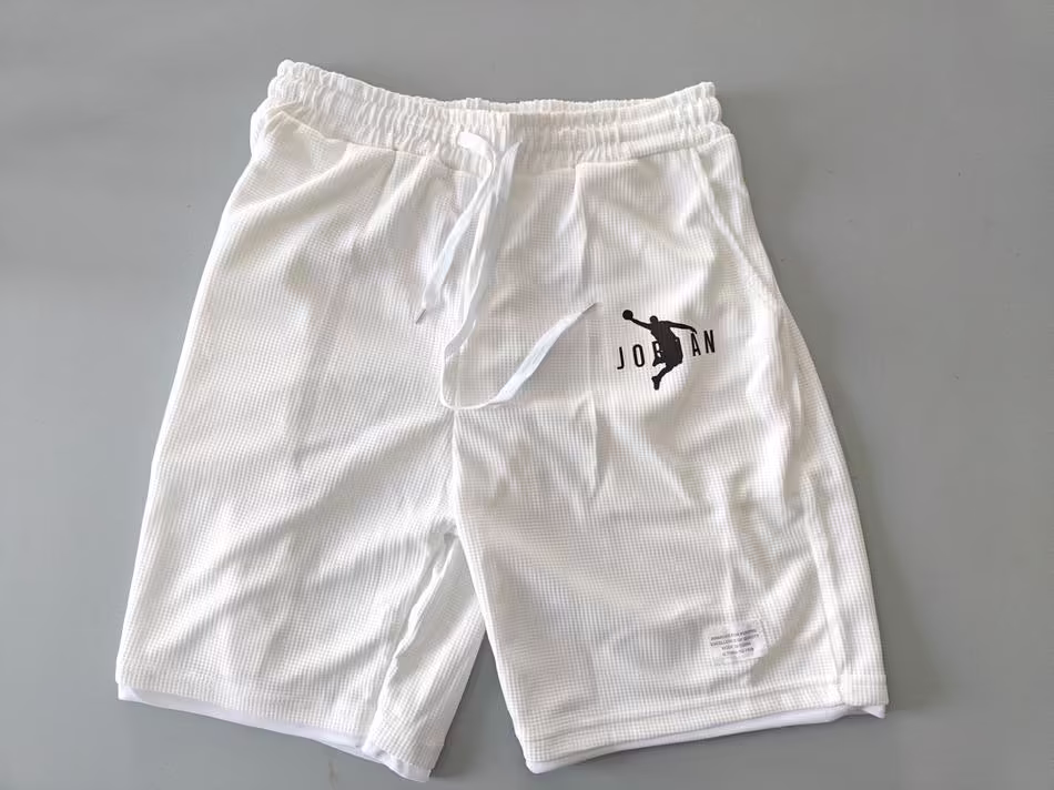 Article Neuf ➡️ (PR-807) Ensemble Tee-shirt haut et short blanc, inspiration “Jordan”, 100% polyester, taille : M, 2 poches sur le côtés + 1 poche arrière, ceinture extensible élastique + cordon serrage, , dimensions short: Hauteur : 48 cm, Tee-shirt : Hauteur : 70 cm, Largueur corps : 54 cm.