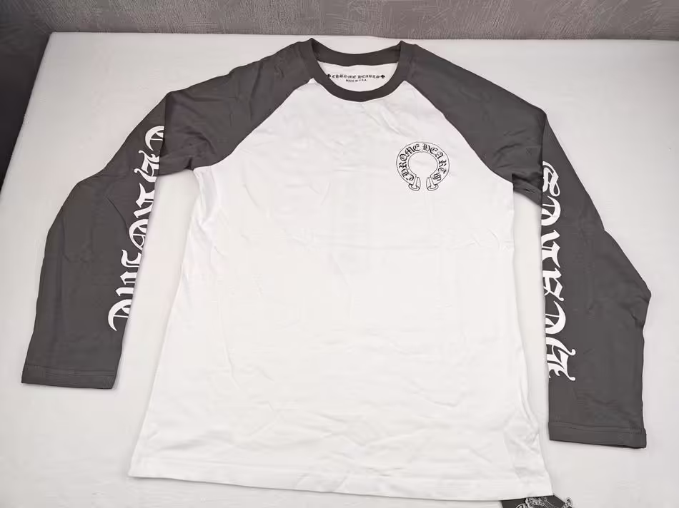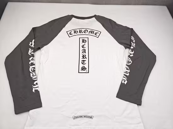 Article NEUF ➡️(pr-819) Tee-shirt manches longues inspiration “Chrome Hearts”, blanc et gris, 100% coton, taille M (peut peut être convenir pour taille L, voir avec les dimensions) hauteur 72 cm, largeur 49 cm, longueur manche 77 cm