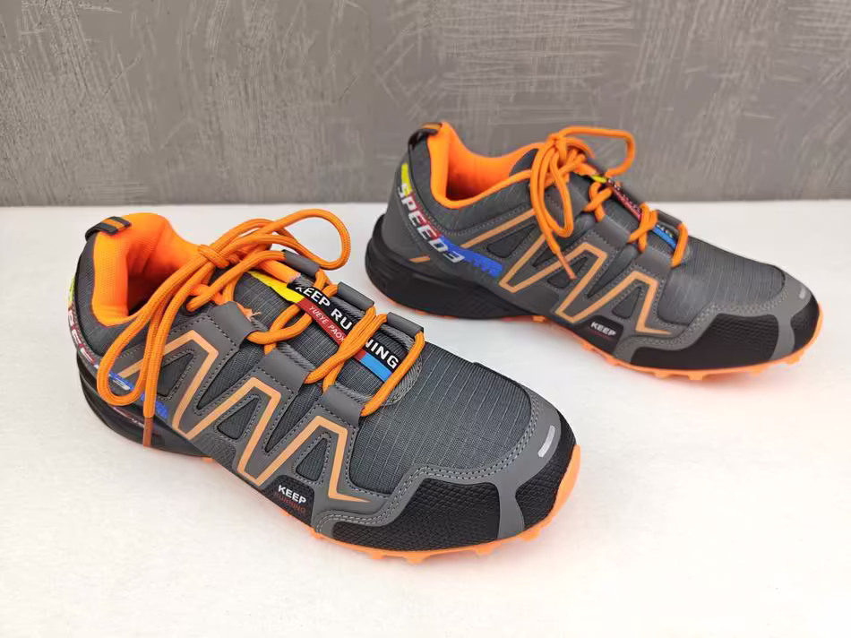 Article NEUF ➡️(pr-866) Baskets / Chaussures de running, de randonnée, de trekking, de marche ou sport divers, ergonomiques et antidouleur, couleur noir & rouge, pointure 44, semelle type crampon