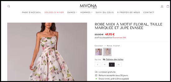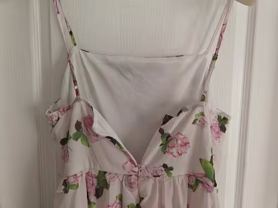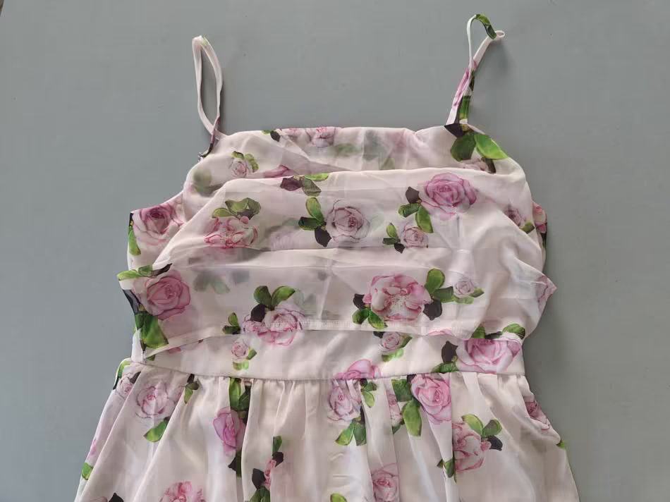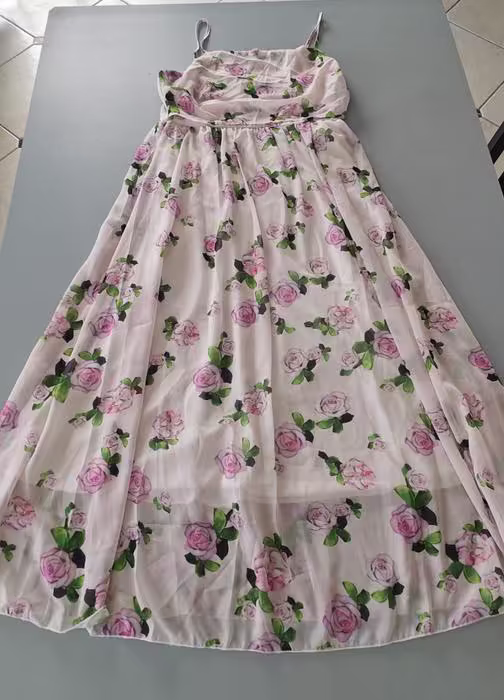 Article NEUF ➡️(pr-882) Robe à motif floral, taille marquée, jupe évasée, Taille M (voir la correspondance sur la photo taille) longueur 120 cm, largeur à la ceinture 40 cm, 100% polyester, doublure blanche 95 % polyester, 5 % spandex, Valeur 50€